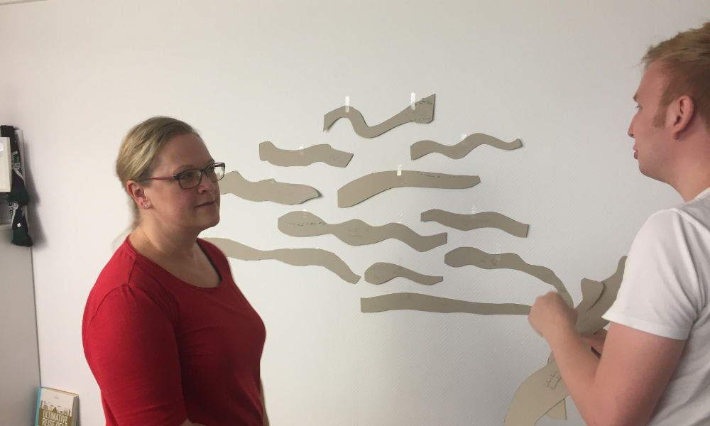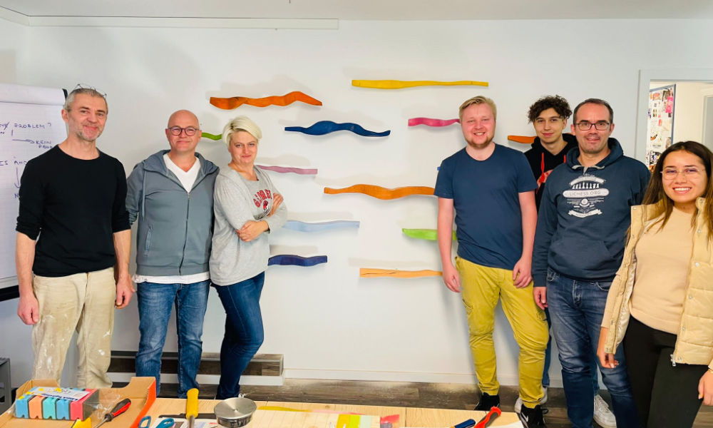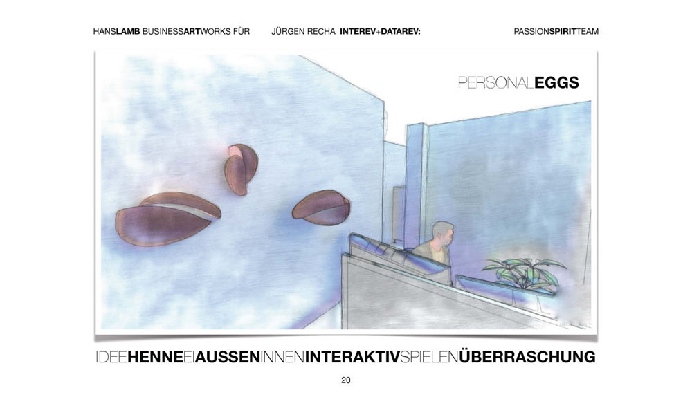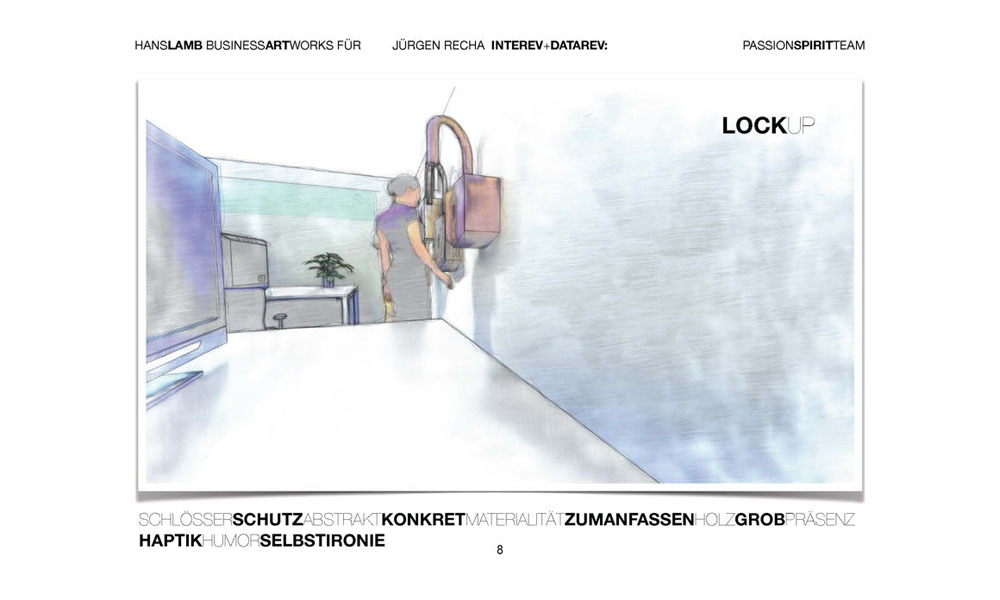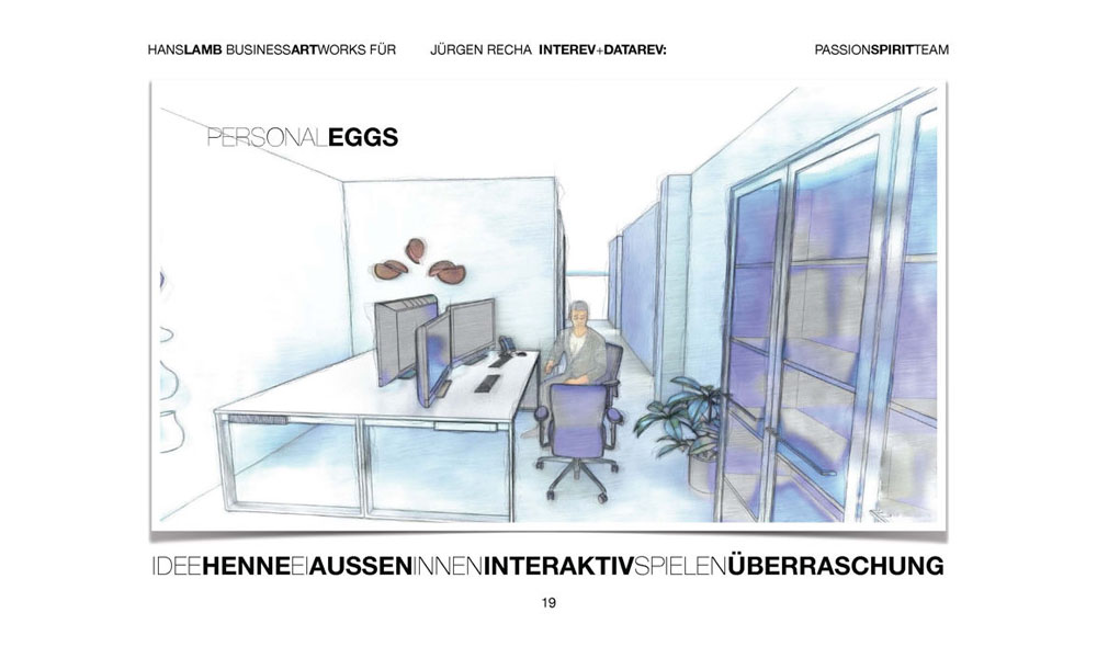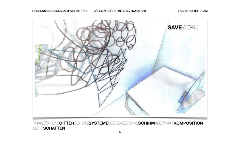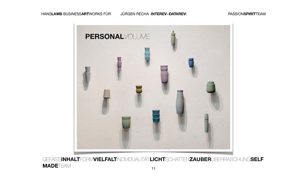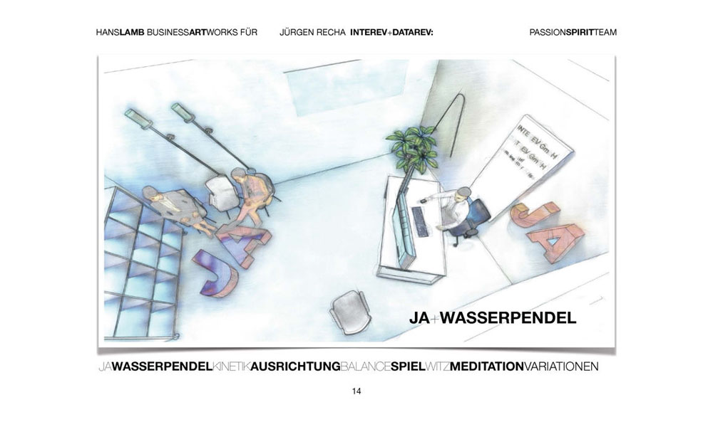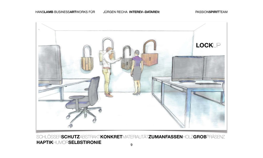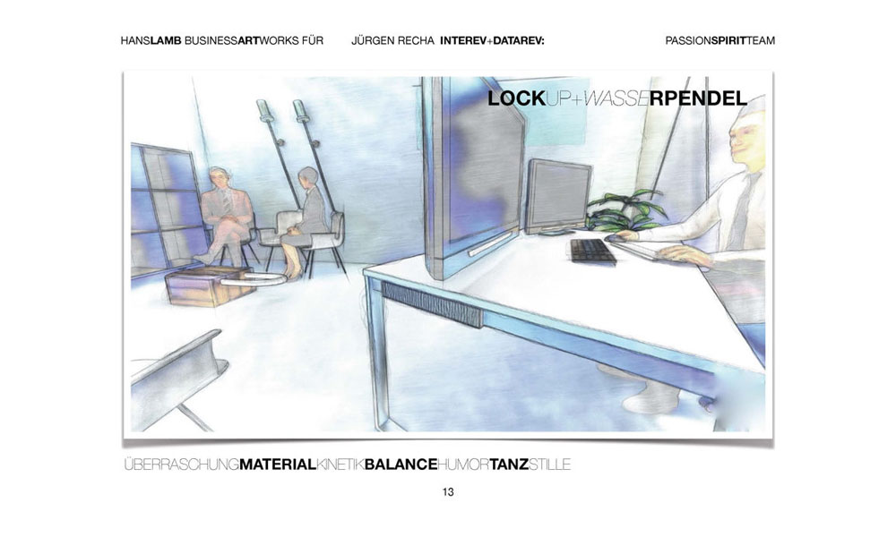 Mittelpunkt der Arbeit mit und für die Langenhagener Unternehmen „INTEREV“ und „DATAREV“ war die Arbeit „Personal Waves“, welche die Mitarbeiter (innen) sehr aktiv ins künstlerische Geschehen hineinziehen konnte: In einem ersten Workshop skizzierten alle Mitarbeiter(innen) ihre persönlichen Wellenformen als Pappschablone. Diese wurden dann im Atelier von BAW dreidimensional in Holz hergestellt. In einem zweiten Workshop fassten die Mitarbeiter (innen) dann ihre Wellen in ihren jeweiligen Wunschfarben, so dass ein buntes Wellen-Spektrum entstand. Dieses Objekt-Ensemble wurde noch am gleichen Tag zusammen im Gemeinschafts-Büro des Unternehmensinstalliert, wodurch jedes Mitglied des Teams nun über sein Objekt auf künstlerische Weise abgebildet wird. Konzeptionelle Arbeiten dieser Art steigern durch die Beteiligung der Mitarbeitenden und durch die repräsentative optische Aufwertung des Arbeitsplatzes die Identifikation mit dem Unternehmen.