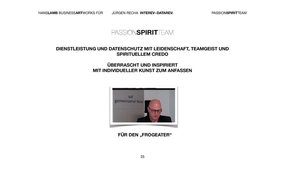 Ich kann diese Einwilligung jederzeit per E-Mail an: lamb@businessartworks.de oder per Brief an: Prof. Hans Lamb