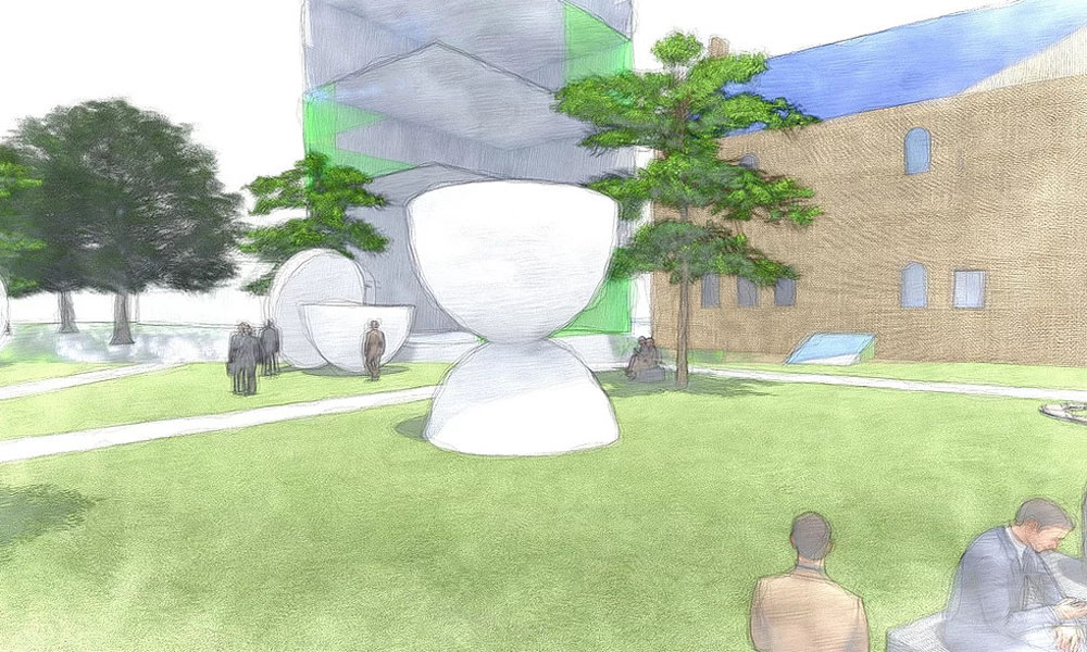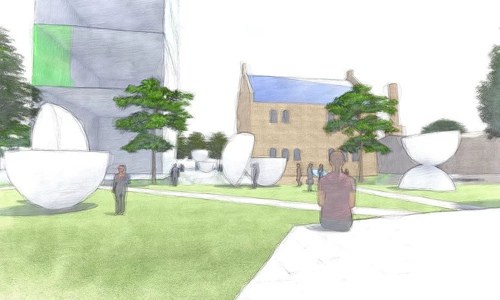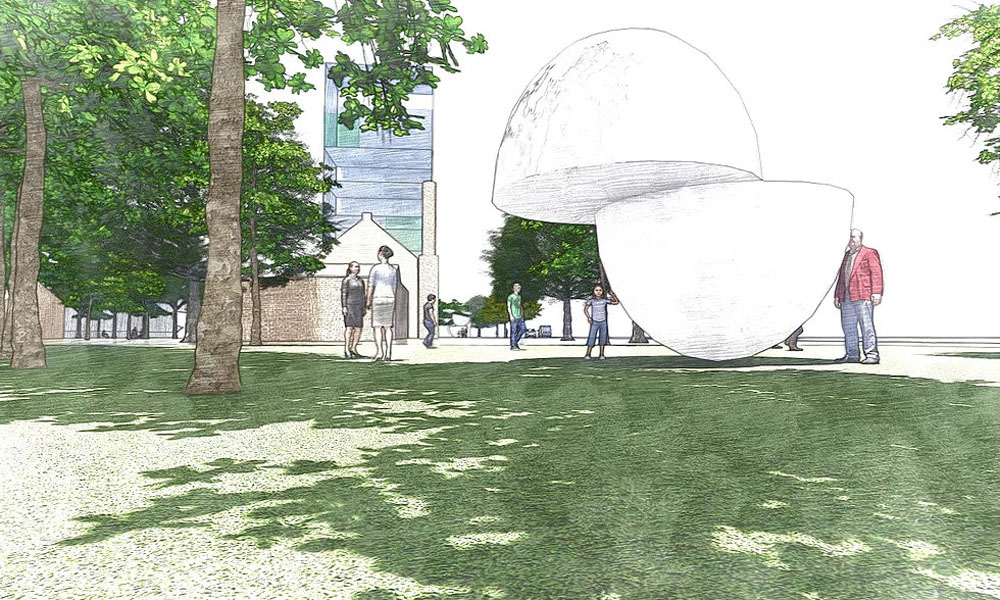„HALFTIME“ ist ein drei- bis maximal fünfteiliges Ensemble von Skulpturen. Jede der bis zu 4 Meter hohen Arbeiten besteht dabei aus jeweils zwei Halbkugelformen in glasfaserverstärktem Kunststoff (GFK) und/oder Beton in Hohlform-Bauweise, die in ihren jeweils unterschiedlichen Anordnungen völlig unterschiedliche „statements“ formulieren.