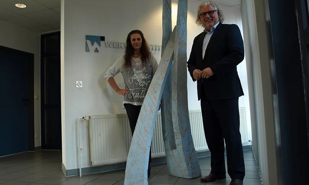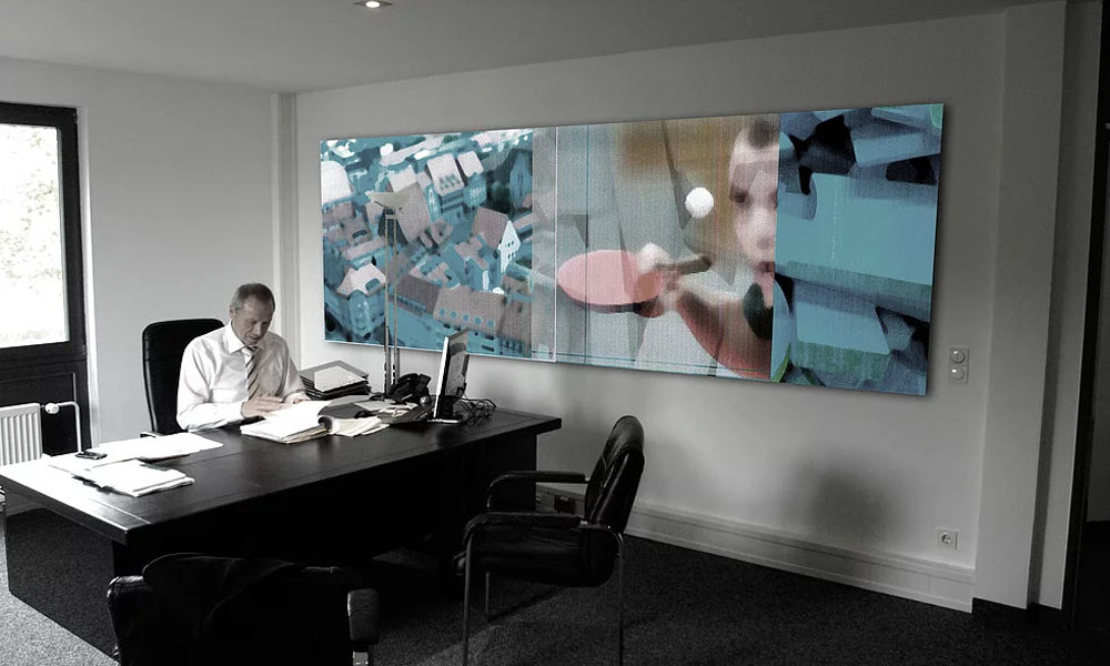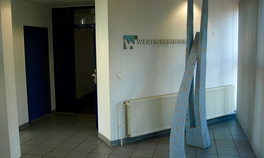 Der Entwurf für das Büro von Werner Ströer, dem Leiter der WERTINVESTITION, zeigt ein Beispiel, wie der persönliche Arbeitsplatz unter Thematisierung von beruflichem Kontext und privaten Interessensgebieten zu einem wirklich individuellen und repräsentativen Ort der Arbeit gestaltet werden kann. Motive aus Architektur und Sport sind zu einem gleichermaßen informativen wie spannenden Tableau zusammen- komponiert.